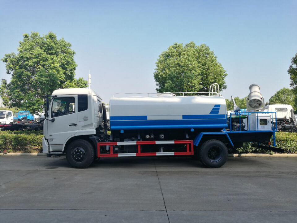 東風天錦12噸抑塵車:底盤采用東風天錦國五底盤,康明斯6缸180馬力發(fā)動機,6檔變速箱,900鋼絲胎帶備胎,原裝空調(diào),ABS,行駛記錄儀,有環(huán)保,有免征,整車不超尺寸。上裝配置:罐體容積11.3噸,罐體為方形罐,罐體內(nèi)部做防腐,主管路鍍鋅,工作平臺,罐體采用杭州威龍60/90大流量水泵,消防接口可自流,音樂喇叭,60-80米噴霧機組。霧炮為全自動,上下負10度到45度,左右車載式280度旋轉(zhuǎn),覆蓋寬度面積100米以上。整車具有灑水車的一切功能:前沖、后灑、側噴、高炮,高炮達到35米至45米。