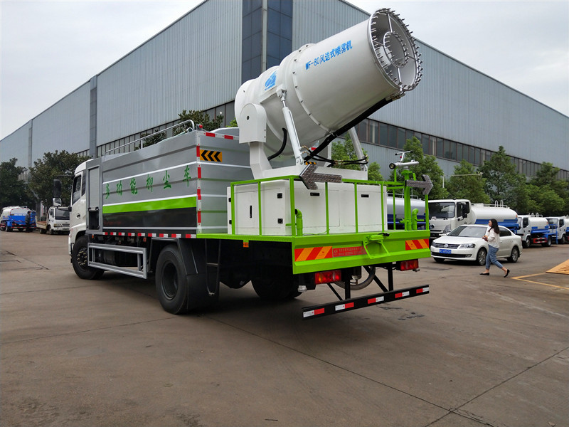 高壓灑水車,霧炮車射程高,射程遠,噴幅寬,工作效率高,環保節能,節約用水,性價比高,射霧炮有效射程可達60-200米,是通過高壓將水細霧化成跟粉塵顆粒大小的水霧顆粒(50~200微米)并從大炮狀的風筒中噴射出來,風力強勁,射程遠范圍廣,又稱為抑塵車,霧炮車,降塵車,噴藥車,多功能射霧除塵車等,主要用于高射(遠)程農藥噴灑,煤礦,港口,碼頭除塵,高爾夫球場噴霧加濕,工礦企業特定場所除塵降溫,災區重點防疫,滅菌,消毒,農作物,數目噴水,噴藥等,專治霧霾除塵除濕,達到凈化空氣的目的。