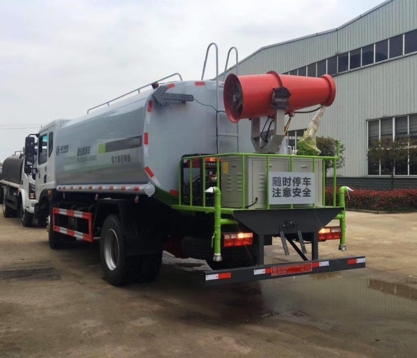 上裝配置標(biāo)配:前沖,后灑,帶側(cè)噴(備注:側(cè)噴可連接蓮蓬頭噴頭和鴨嘴噴頭);后帶工作平臺(tái),平臺(tái)上安裝綠化灑水車高炮,高炮可以360度旋轉(zhuǎn),炮噴灑形狀可調(diào)節(jié);帶自流閥及消防接頭各一個(gè),60-90程力牌灑水車專用水泵