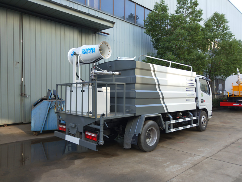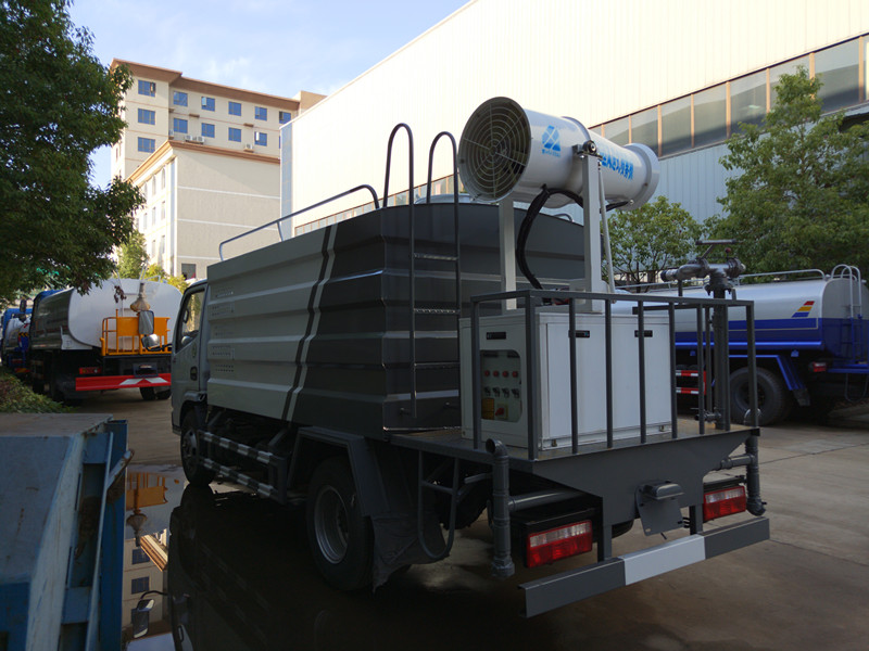 抑塵車吸程≧7米,灑水寬度≧14-16米,射程≧25-40米,引水時間<5min,流量60m3/h。前沖(噴)、后灑、帶側噴(花灑)、帶后工作平臺、平臺上安裝綠化灑水高炮(炮噴射形狀可調節:直沖、大雨、中雨、毛毛雨、霧狀、可連續調節,360°旋轉),配消防接口,自流閥,濾網,帶自吸自排功能。配備大功率專用灑水泵,泵可自吸自排,安裝過濾網,帶消防接口,可通過消防栓進水,帶自流閥,此車尾部加裝大功率農藥噴灑炮,噴灑狀態霧狀,有效射程15-45米,外部平臺帶獨立的機組。