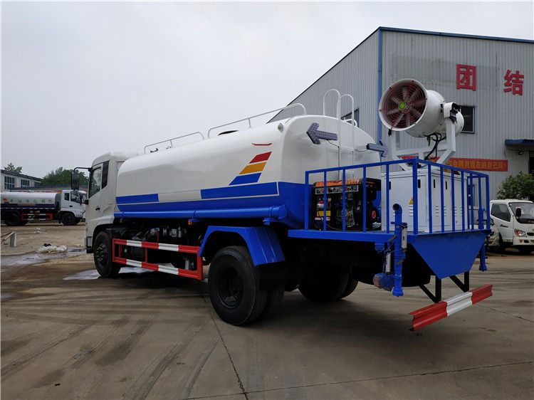 4.東風天錦灑水車(罐體容積8000--12000L)該車采用東風康明斯170馬力柴油發動機和東風商用車140馬力柴油發動機,9.00-20輪胎,帶方向助力,帶空調,斷汽剎, 5檔變速箱,4.5噸前橋,9噸后橋,整車外形尺寸:長×寬×高(mm)8500×2390×2900,總質量(kg):16000,額定質量(kg):9300,整備質量(kg):6505,該車罐體有效容積:10噸-12噸,該車帶國家免征公告。