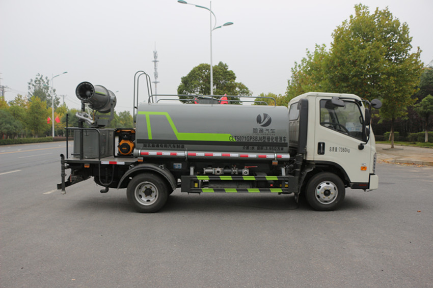 福田灑水車采用福田時代底盤,單排白色駕駛室,安徽全柴68馬力國六發動機,5檔變速箱,軸距2800mm,3噸后橋,6.00-15原廠尼龍胎,油剎制動。