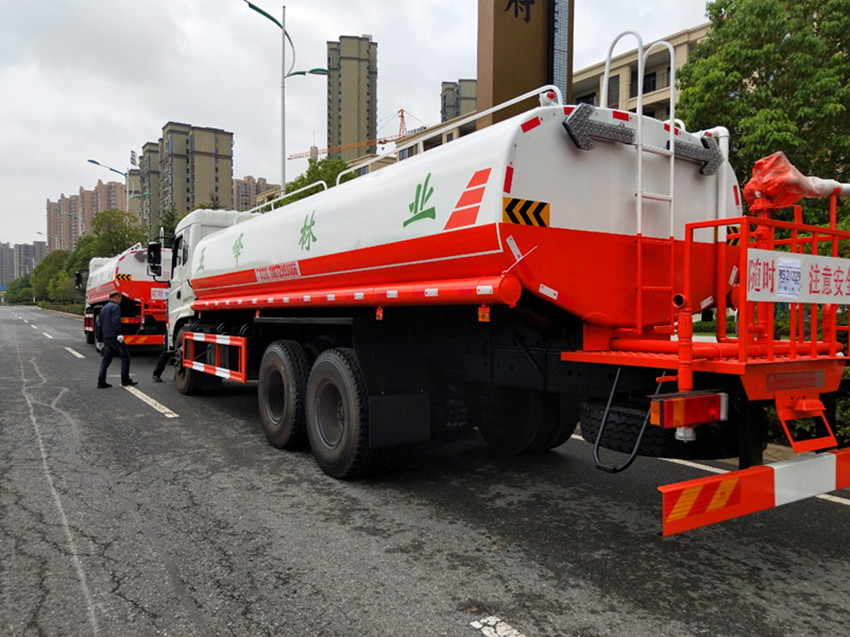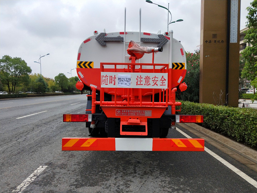★配置及功能介紹:東風(fēng)原廠底盤,國標(biāo)優(yōu)質(zhì)4mm碳鋼板罐體;配備優(yōu)質(zhì)高效專用灑水泵,可實現(xiàn)前沖(噴)、后灑、側(cè)噴等多種功用。罐體前方安裝視水管,可實時觀測水量;罐體后方加裝帶安全護(hù)欄的工作平臺,可操控綠化灑水炮旋轉(zhuǎn)作業(yè),水量可調(diào)節(jié)為柱狀、霧狀等;該車可通過水泵自吸自排、消防接口進(jìn)水、人孔口取水,罐體底部帶自流閥,可將罐體存水排放干凈。
