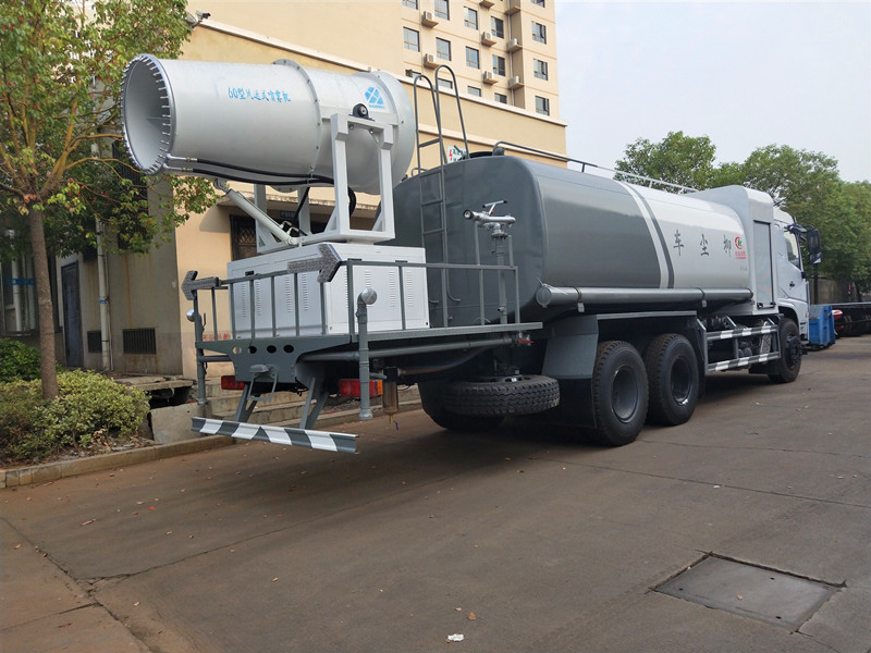 天龍后雙橋多功能抑塵車配置介紹:型號:CLW5251TDYD5 軸距4350+1350,康明斯270馬力,1100鋼絲胎,威龍60/90水泵,120米華力康明斯100KW霧炮,帶無線遙控和駕駛室觸屏控制,前沖保留,加裝前直沖萬向鴨子嘴,加裝箭頭燈,后灑管道位置一個25的出水口,罐體防腐處理,加裝低水位報警裝置。罐體容積16立方,罐體為方形,內部做防腐,加裝4個進口氣動閥(駕駛室內操作),主管路鍍鋅,工作平臺,采用60/90大流量水泵,消防接口可自流,音樂喇叭,60米噴霧機組(CLW-100型),副發動機為75KW,萬科7.5KW不銹鋼多級離心泵,22KW風扇電機,選裝無線遙控操作,陶瓷中央噴頭,霧化距離:60米(室內靜風狀態),實際射程:100米(溫度、濕度、風速等標準狀態),還可以選裝80米,100米霧炮。