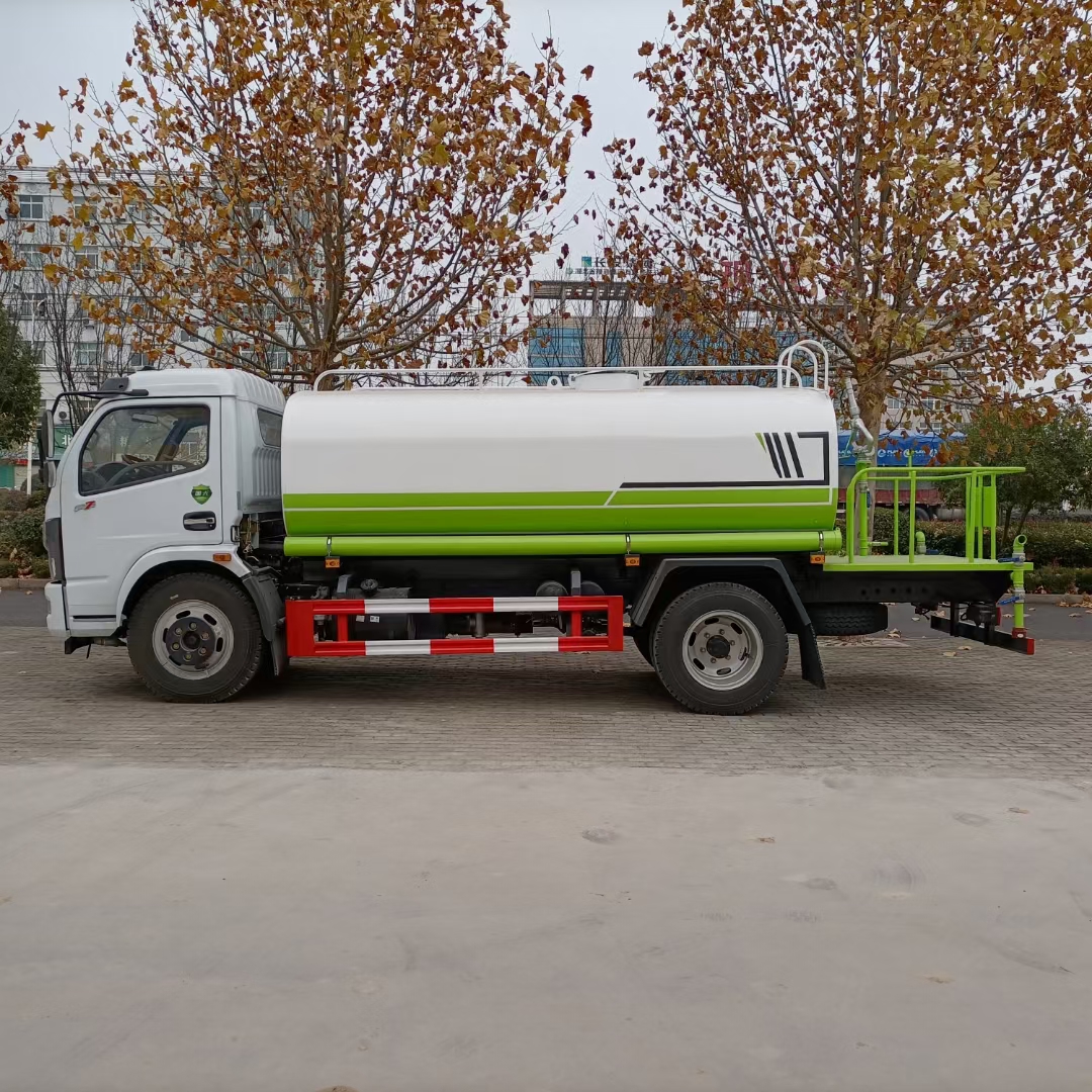 4.灑水車前噴頭位置較低,靠近地面,噴灑壓力較大,可用于沖洗路面;后噴頭位置較高(灑水車后噴頭一般左右各安裝一個),灑水面較寬,可用于公路施工灑水,使用后噴頭時,應將前噴管關閉;使用可調噴頭灑水時,灑水寬度可根據需要調整。灑水寬度越寬,中間重疊量越少,灑水密度越均勻。