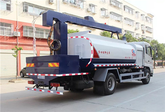 罐體為10立方圓形罐,罐體內(nèi)部做防腐,前沖、后灑、側(cè)噴、高炮,抑塵噴灑桿(帶旋轉(zhuǎn)伸縮功能)。噴灑桿離地3.5-4.5米 ,后部平臺帶8KW副發(fā)電機(jī)組,罐體內(nèi)部加兩個(gè)1.5KW電動(dòng)馬達(dá)(帶攪拌功能)罐體噴漆上白下藍(lán),平臺和噴灑桿藍(lán)色。遙控操作噴灑桿上下左右旋轉(zhuǎn),平臺較上一臺車左右加寬20CM,電控箱安裝在后部平臺。