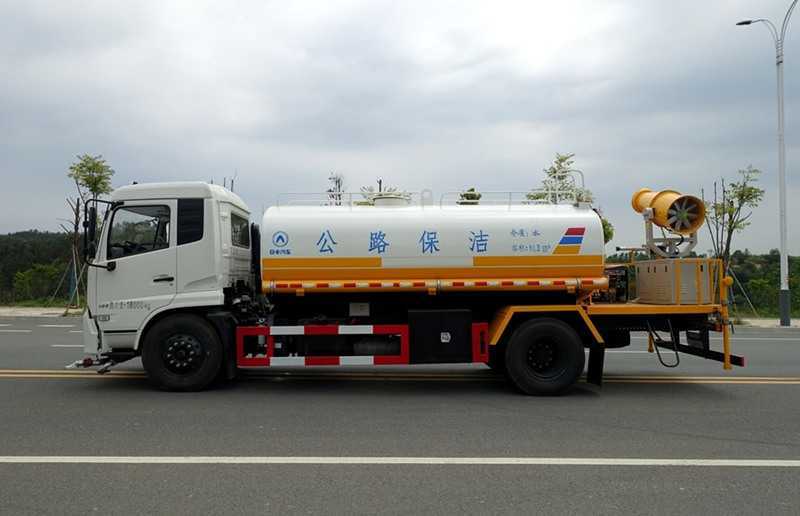 4、后噴灑:裝有兩只可噴淋后灑裝置,主要對路面進行保潔和壓塵,呈扇形噴灑時,灑水寬度可達20m以上。