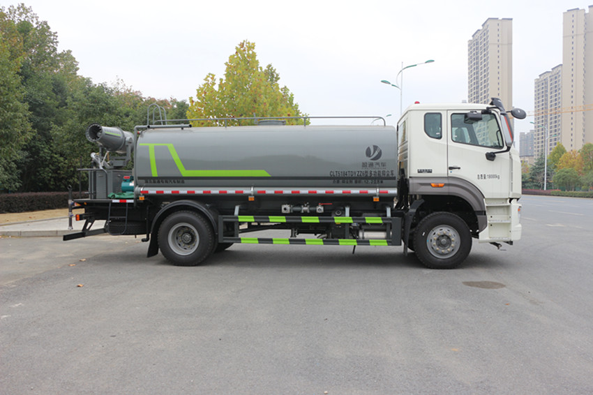 12-15噸灑水車性能簡介:吸程≧7米,灑水寬度≧14-16米,射程≧25-40米,引水時間<5min,流量60m3/h。前沖(噴)、后灑、帶側(cè)噴(花灑)、帶后工作平臺、平臺上安裝綠化灑水高炮(炮噴射形狀可調(diào)節(jié):直沖、大雨、中雨、毛毛雨、霧狀、可連續(xù)調(diào)節(jié),360°旋轉(zhuǎn)),配消防接口,自流閥,濾網(wǎng),帶自吸自排功能。安裝30-80米霧炮,霧炮可以遙控操作,可以手動操作,按霧炮大小配多大功率發(fā)電機(jī)