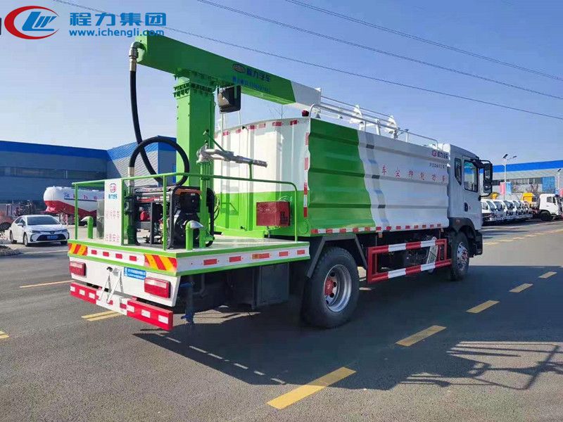 上裝配置:罐體為11 立方形罐,罐體內(nèi)部做防腐,抑塵噴灑桿(帶旋轉(zhuǎn)伸縮功能)。具有前沖、后灑、高炮功能,罐體及管道做保溫處理,噴灑桿離地3.5-4.5 米,億豐水泵,后部平臺帶8KW 副發(fā)電機組,罐體內(nèi)部加兩個1.5KW 電機(帶攪拌功能)罐體噴漆上白下藍,平臺和噴灑桿綠色。遙控操作噴灑桿上下左右旋轉(zhuǎn),平臺較上一臺車左右加寬20CM,電控箱安裝在后部平臺。