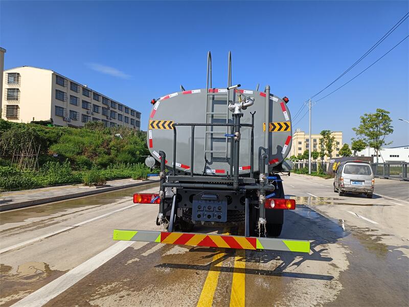 東風15噸灑水車標配前噴(鴨嘴)、后沖、后灑、側噴、后置式工作 平臺,平臺上配置綠化水炮(可 360°旋轉,既可以調成柱狀,也可 以調成霧狀,更可以調成直沖狀、大雨、中雨、小雨、毛毛雨),配 備優質大功率專用灑水泵(可自吸自排,可從河里或池塘抽水到罐體), 取力器,雜物過濾網,消防接口,自流球閥系統、取力器、球閥、濾網 均為國家標準產品,主管道加粗,法蘭墊、法蘭盤加厚,大通徑球閥。 整體具備性能優良安全可靠、效率高、流量大、維修方便等特點。
