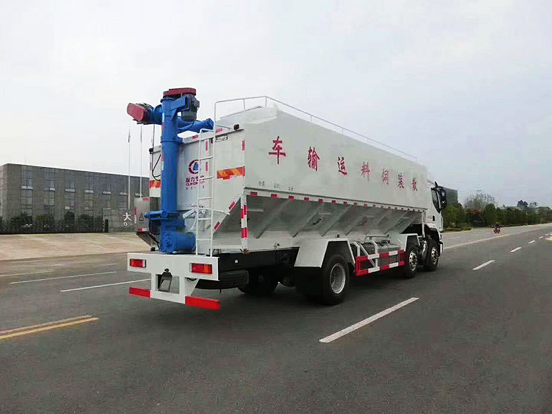 散裝飼料車安裝報警器,當打料完成,升降絞龍脫離水平支架固定位置,駕駛室內的蜂鳴器鳴叫,提醒使用者把升降絞龍放到位,以免發生不避要的危險及設備損壞。尾部安裝工作燈,夜間操作更方便。