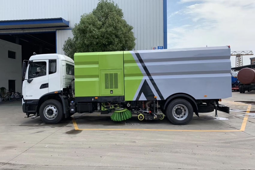 東風天錦洗掃車具有路面清洗、路面清掃路緣和路緣石立面洗刷、低壓沖洗、噴霧 除塵等多功能。有“全洗掃”、 “左洗掃”、 “右洗掃”、 “全掃”、 多種作 業模式可選擇。選擇“全洗掃”模式清洗廣場和路面,清洗效率高效果好,洗 凈率達 95%以上。選擇“左洗掃”或“右洗掃”模式清洗路面和路緣 。需要進 行路面清掃或路面保潔作業時,可選擇掃路模式。需要噴霧除塵時,可開啟噴霧裝置,進行噴霧除塵作業。可以像灑水車一樣對路面進行低壓沖洗作業。