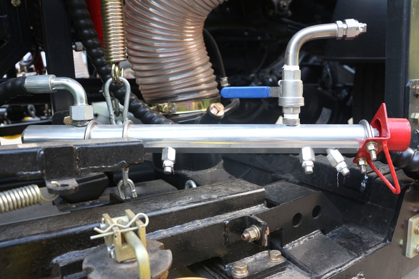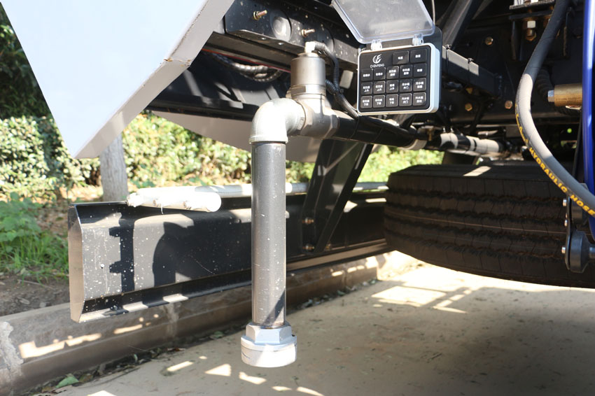 九、東風天錦洗掃車的污水箱內采用大平面斜坡結構,最大卸料角度可達50度,更易于傾倒垃圾。污水箱內設置了防溢滿報警裝置和高壓噴淋清洗裝置,防溢滿報警裝置可防止污水作業時從吸管溢出,造成二次污染;高壓噴淋清洗裝置在傾倒垃圾后可對污水箱進行自動清洗,大大減輕了操作人員的勞動強度。