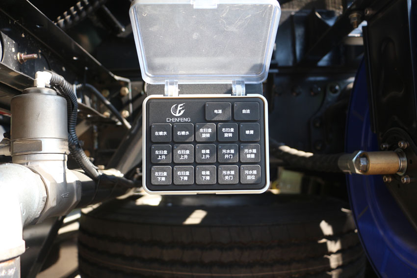 四、在一鍵控制技術基礎上增加副發動機手動油門控制系統,可根據路況獨立調節油門大小,有效增強洗掃效果,減少油耗。