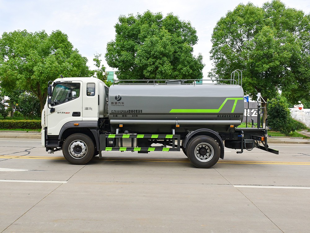 該車主要用于城鄉園林綠化,路面噴灑,除塵和降溫;主要裝置為罐體及噴灑裝置;罐體總容量:11.4立方米,罐體有效容積:10.86立方米,罐體外形尺寸(長×長軸×短軸)(mm):5200×2300×1400;ABS型號為CM4XL-4S/4M,生產廠家為廣州瑞立科密汽車電子股份有限公司;隨底盤選裝駕駛室;側、后防護材料均為:Q235碳鋼,連接方式均為:螺栓連接,后部防護截面尺寸(mm):120×50,后部防護離地高度(mm):470.采用4500mm軸距。選裝限速裝置,限制最高車速80km/h。選裝后部箭頭燈,選裝后部弧形噴灑裝置,選裝油箱電瓶安裝位置。選裝噴灑裝置樣式,選裝水炮支架位置,選裝自動球閥安裝位置。