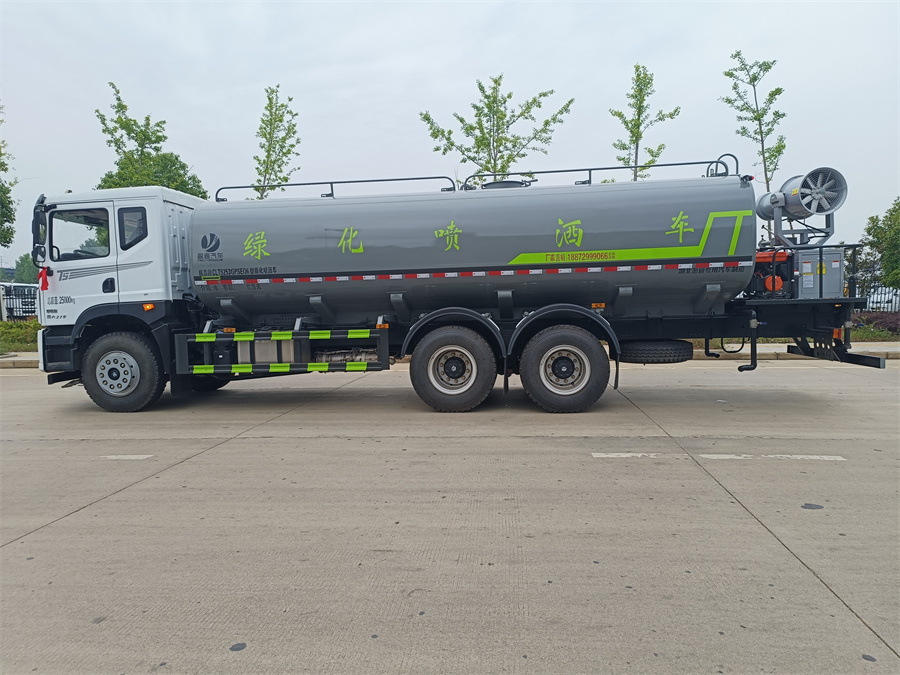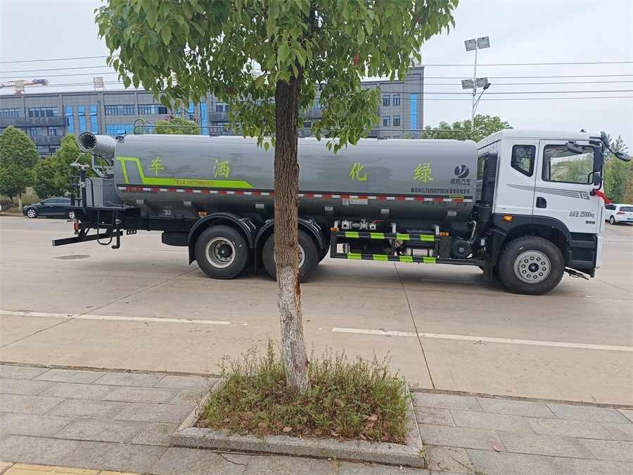 東風新款22噸霧炮灑水車產(chǎn)品標配前噴(鴨嘴)、后沖、后灑、側(cè)噴、后置式工作 平臺,平臺上配置綠化水炮(可 360 °旋轉(zhuǎn),既可以調(diào)成柱狀,也可 以調(diào)成霧狀,更可以調(diào)成直沖狀、大雨、中雨、小雨、毛毛雨),配 備優(yōu)質(zhì)大功率專用灑水泵(可自吸自排,可從河里或池塘抽水到罐體), 取力器,雜物過濾網(wǎng),消防接口, 自流球閥系統(tǒng)、取力器、球閥、濾網(wǎng) 均為國家標準產(chǎn)品,主管道加粗,法蘭墊、法蘭盤加厚,大通徑球閥。 整體具備性能優(yōu)良安全可靠、效率高、流量大、維修方便等特點。