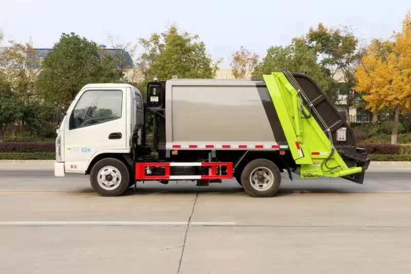 新款平面弧形廂體,廂體材料為武鋼優(yōu)質(zhì)碳鋼,外箱尺寸:5995×2000×2450mm,有效壓縮容積4立方,PLC一鍵操作控制,手電一體操作模式,兩側(cè)雙電控,帶駕駛室內(nèi)操作,底板支撐加強(qiáng),雙向壓縮,開放式易清潔污水箱,解決了垃圾運(yùn)輸過程中的二次污染的問題。壓縮式垃圾車具有自動(dòng)反復(fù)壓縮以及蠕動(dòng)壓縮功能,壓縮比高、密封性好、裝載量大﹑操作方便、環(huán)保性好﹑整車?yán)霉β矢叩葍?yōu)點(diǎn)。凱馬壓縮式垃圾車小巧靈活,可在市內(nèi)地下室任意穿行,C證可開。
