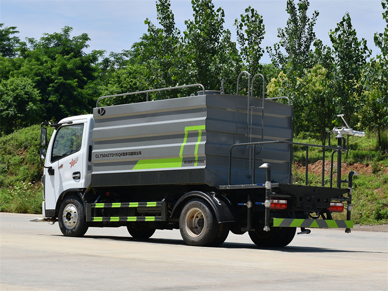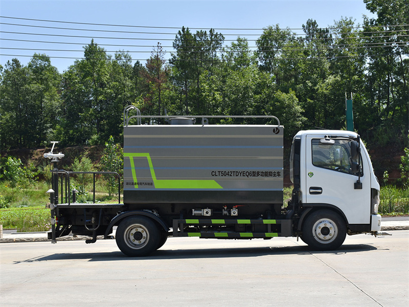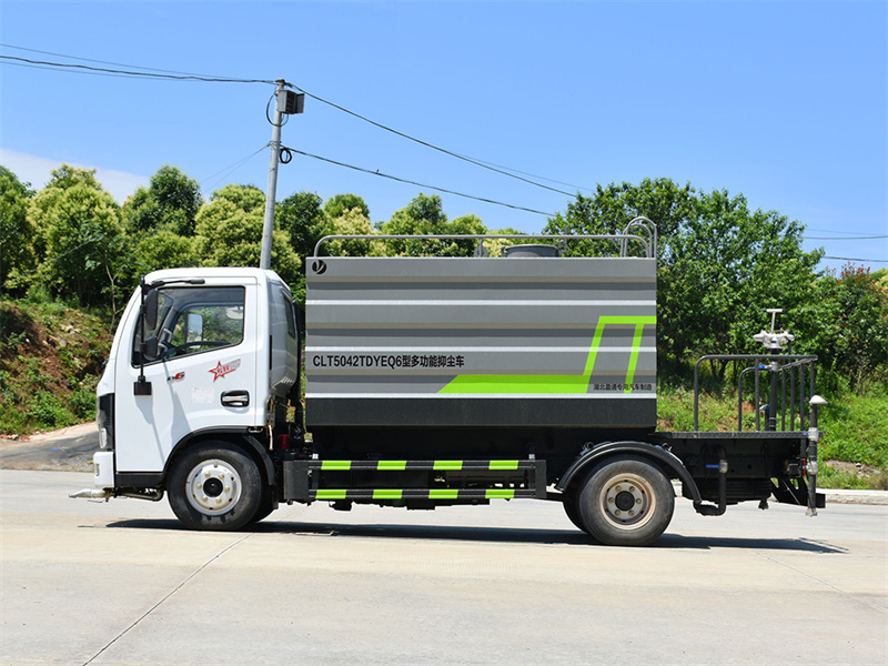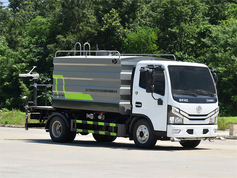 東風(fēng)7方藍(lán)牌灑水車產(chǎn)品簡(jiǎn)述:縱昂牌 CLT5042TDYEQ6 型多功能抑塵車標(biāo)配前噴(鴨嘴)、后對(duì) 沖、后灑、側(cè)噴、后置式工作平臺(tái),平臺(tái)上配置綠化水炮可 360 °旋轉(zhuǎn),既可 以調(diào)成柱狀,也可以調(diào)成霧狀),配備優(yōu)質(zhì)大功率專用灑水泵(可自吸自排, 可從河里或池塘抽水到罐體),取力器,雜物過(guò)濾網(wǎng),消防接口,自流球閥系統(tǒng)、 取力器、球閥、濾網(wǎng)均為國(guó)家標(biāo)準(zhǔn)產(chǎn)品,主管道加粗,法蘭墊、法蘭盤加厚,大通徑球閥。整體具備性能優(yōu)良安全可靠、效率高、流量大、維修方便等特點(diǎn)