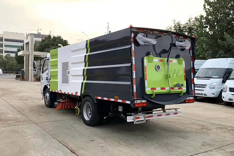 國六洗掃車主要由:汽車二類底盤、副發動機及其傳動裝置、風機、高壓水清洗系統、低壓沖洗系統、掃盤降塵系統、清水箱、垃圾箱、左右清掃裝置、吸嘴、液壓系統、氣動系統、電控系統等部件組成。