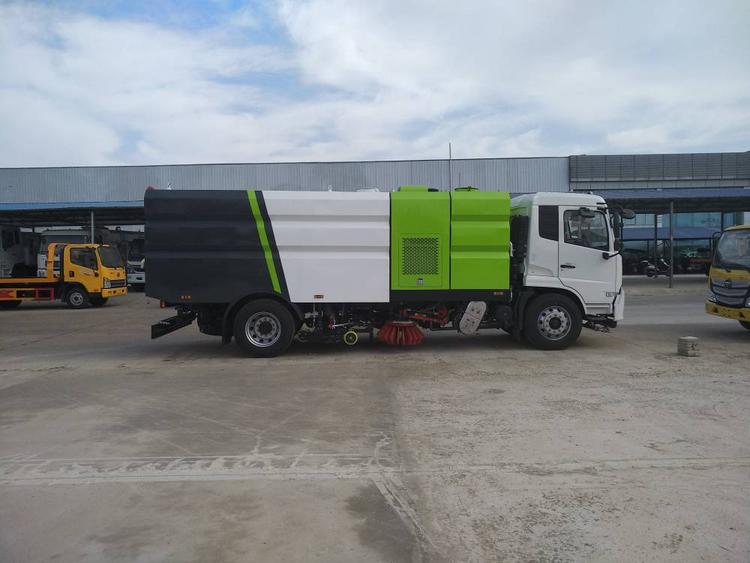 國六東風(fēng)天錦洗掃車 箱體容積9立方水7立方塵.中置2掃盤、康明斯170馬力副發(fā)動機(多利卡為140馬力康明斯副發(fā)動機),德國品孚高壓水泵(前沖側(cè)噴中噴后噴霧側(cè)沖洗車水槍垃圾箱自潔裝置)、高壓路沿清洗噴頭,威龍低壓泵,(前沖)不銹鋼垃圾箱、不銹鋼高壓管路,德國控制器西門子電器原件、水箱均帶防溢或低水位報警裝置;倒車及洗掃狀態(tài)室內(nèi)監(jiān)視器、18m高壓沖洗卷盤、清掃寬度3.5m;清洗壓力10Mpa,吸入顆粒度120mm.