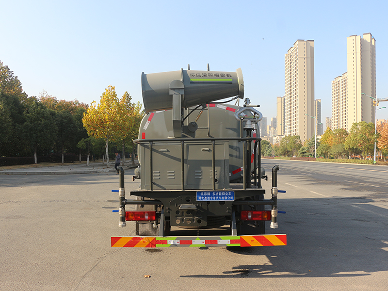 標準配置灑水車主要裝備有:前沖(沖洗公路路面)、后灑(公路路面養護)、側噴、高位側花灑(路邊綠化帶優化);后工作平臺高壓水炮,可調節成柱狀,射程≥28m;也可調節成霧狀,射程≥30米,水泵自吸高度:≤7m,灑水寬度:≥15m。側防護網,自流閥,消防接頭。灑水車水泵為常壓水泵,功能可以抽水、排水。另外根據用戶要求,可加消防泵、噴霧機、農藥卷盤、農藥柱塞泵。罐內可以做防腐防銹、電磁閥氣動閥自動放水等****,以滿足不同用戶需求。