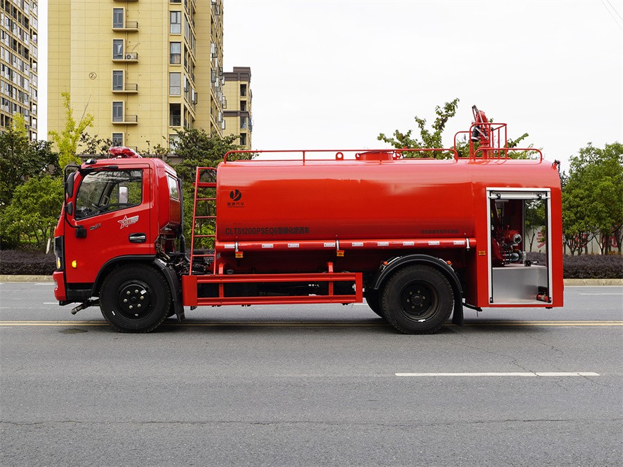 消防灑水車,又稱消防灑水兩用車、灑水消防兩用車、森林消防灑水車、學校消防灑水車、機 場消防灑水車、社區消防灑水、街道及鄉鎮和鄉村消防灑水功能。是一款集消防車和灑水車于一體的 兩用車,是介于消防車與灑水車之間,具有消防灑水一體化用途,與消防車相比雖缺少器材箱,但與 消防車的射程相同,具有同樣的消防功能。 功能介紹:與灑水車相比,繼承了灑水車的全部功能,同時也彌補了灑水車射程小,壓力小等 問題。消防灑水車除了裝備消防水泵及器材以外,還設有較大容量的貯水罐及水槍、水炮等。可將水 和消防人員輸送至火場獨立進行撲救火災。它也可以從水源吸水直接進行撲救,或向其他消防車和滅 火噴射裝置供水。優于消防車的功能:因為沒有消防車器材箱,底盤高度及車輛寬度更適應山間、鄉 鎮、鄉村的路況,是森林消防、鄉鎮和鄉村消防的有利消防工具。