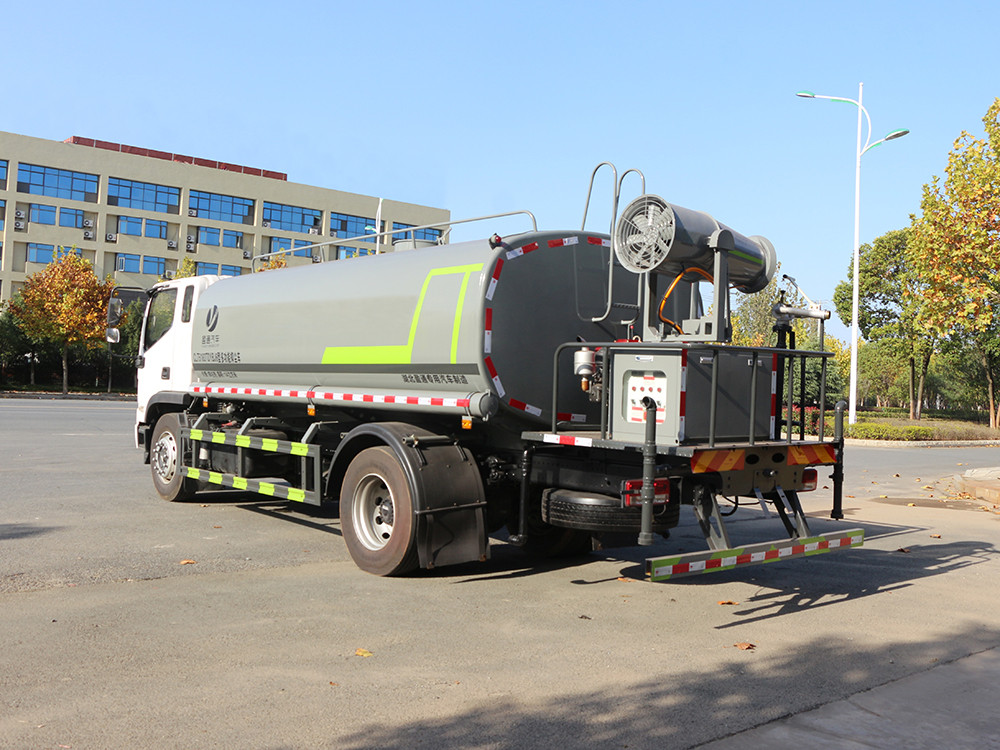 二.產品配置 1.底盤配置: 發動機玉柴 245 馬力(六缸),法士特 8 檔,4500 軸距,10.00 鋼絲胎,前 4.5T/后 10T,中控鎖,電動玻璃,助力,空調,行車記錄 儀2.上裝配置: 1、罐體約為 16 方,可加裝 30-40 型霧炮 2、邊燈帶電,罐體尾部上方標配 2 個紅色示寬燈, 3、標配前噴為鴨嘴直沖,標配后沖,用戶可根據自己的需求,來調 整對沖位置。 4、花紋防滑平臺,炮筒后蓋為定制型螺栓卡扣, 5、前噴、后沖、后灑、側噴,綠化高炮開關球閥均采用 50 大通經 不銹鋼球閥, 6、新式軸承式水炮,更加耐用, 7、60-90 型水泵, 8、防腐法蘭墊片, 9、鋁制后灑,不易炸開 10、罐體自動焊(美國林肯焊機及電源),拼板自動焊接,封頭環 縫焊接,無氣孔,焊縫美觀。 11、側護網、后保險杠、均為螺栓連接,方便拆卸,維修方便。 12、塑料擋泥板,替代鐵擋泥板,更加輕便,用螺栓連接,方便拆 卸。 13、前部、后部主管連接處為 6 孔圓法蘭,不易沖墊