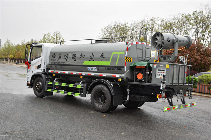 抑塵車具體配置:底盤部分,采用原廠東風底盤,云內(nèi)150馬力發(fā)動機,3800mm軸距,萬里揚6檔變速箱,8.25R20輪胎,國六排放標準,帶空調(diào),氣囊座椅,多功能方向盤,專用部分,罐體采用優(yōu)質(zhì)碳鋼材質(zhì)制作,帶兩個前沖噴頭、兩個后灑噴頭、兩個側(cè)噴、后工作平臺、尾部安裝綠化炮,綠化炮可以自行調(diào)節(jié)(柱狀,大雨,中雨,小雨,霧狀),帶專用灑水泵可以實現(xiàn)自吸自排,帶消防接口,兩根輸水管,加裝30型柴油霧炮,帶底盤合格證和整車合格證