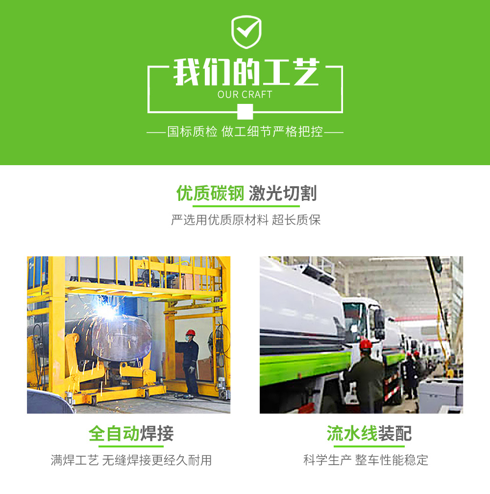 罐體實際容積約為9.35立方米,采用武鋼優質碳鋼板卷壓成型。配備專用灑水泵,自吸自排,前噴后灑、側噴、后工作平臺及灑水高壓炮。灑水泵自吸高度為6米左右,整車灑水寬度14米左右,后工作平臺水炮可調成:直沖狀、大雨、中雨、小雨、霧狀,有效射程≥28米,整車帶接頭、水位計,自流閥。后工作平臺主管道有一個一寸的澆花接口,附送2根3米水管,1個爬梯,兩側及后保險杠。