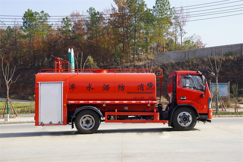 消防灑水車,又稱消防灑水兩用車、灑水消防兩用車、森林消防灑水車、學(xué)校消防灑水車、機(jī) 場(chǎng)消防灑水車、社區(qū)消防灑水、街道及鄉(xiāng)鎮(zhèn)和鄉(xiāng)村消防灑水功能。是一款集消防車和灑水車于一體的 兩用車,是介于消防車與灑水車之間,具有消防灑水一體化用途,與消防車相比雖缺少器材箱,但與 消防車的射程相同,具有同樣的消防功能。 功能介紹:與灑水車相比,繼承了灑水車的全部功能,同時(shí)也彌補(bǔ)了灑水車射程小,壓力小等 問(wèn)題。消防灑水車除了裝備消防水泵及器材以外,還設(shè)有較大容量的貯水罐及水槍、水炮等。可將水 和消防人員輸送至火場(chǎng)獨(dú)立進(jìn)行撲救火災(zāi)。它也可以從水源吸水直接進(jìn)行撲救,或向其他消防車和滅 火噴射裝置供水。優(yōu)于消防車的功能:因?yàn)闆]有消防車器材箱,底盤高度及車輛寬度更適應(yīng)山間、鄉(xiāng) 鎮(zhèn)、鄉(xiāng)村的路況,是森林消防、鄉(xiāng)鎮(zhèn)和鄉(xiāng)村消防的有利消防工具